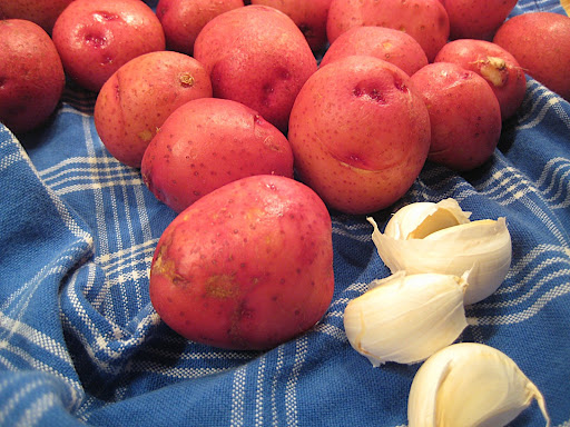 Closer to dinner time, I cut up new potatoes and boiled them until they were tender but not crumbling.